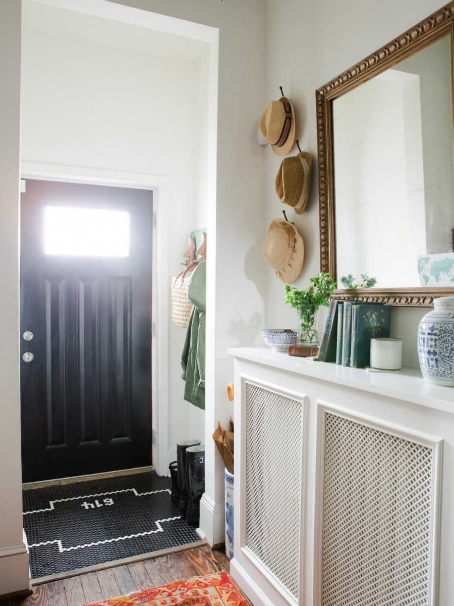 Зеркало с ромбами до потолка возле входной двериИсточник fi.pinterest.com