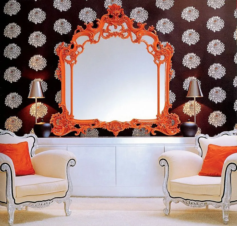 - Смотрите на дизайн зеркал. Заказывайте или приобретайте сразу такую деталь, которая будет соответствовать выбранному интерьерному направлению. Если приобретаются зеркала для акцента, их окантовка должна выглядеть контрастной на фоне комнаты.