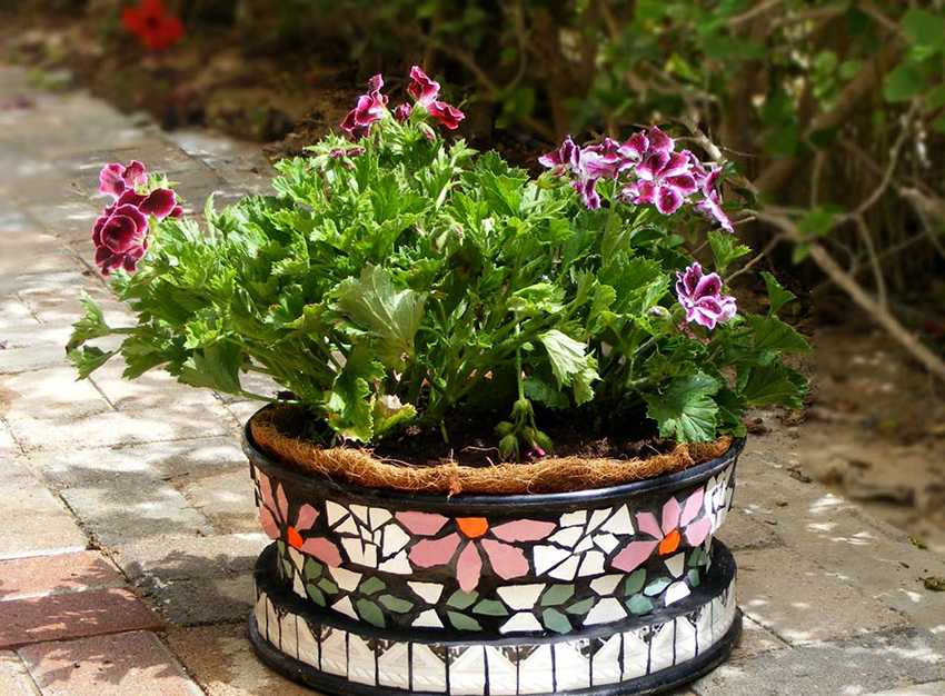 При помощи полых шлакоблоков нередко создают цветочную композицию для сада, выстроив элементы в виде пирамиды или башни, как показано на фото горшков. Придать вазонам оригинальности можно посредством покрытия поверхности изделий красками. Горшок для растений можно создать из обычной мусорной урны, которая выполнена из блестящего материала. К днищу изделия для возможности его перемещения прикрепляют вращающиеся мебельные колесики.