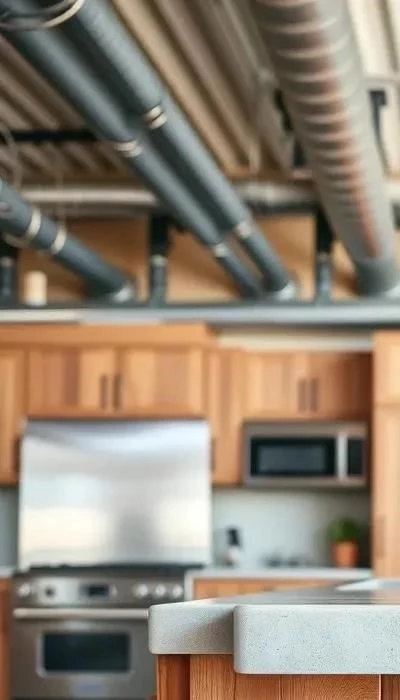 - Кухня: Керамогранит или бетон для пола, металлические элементы для столешницы и полок.
