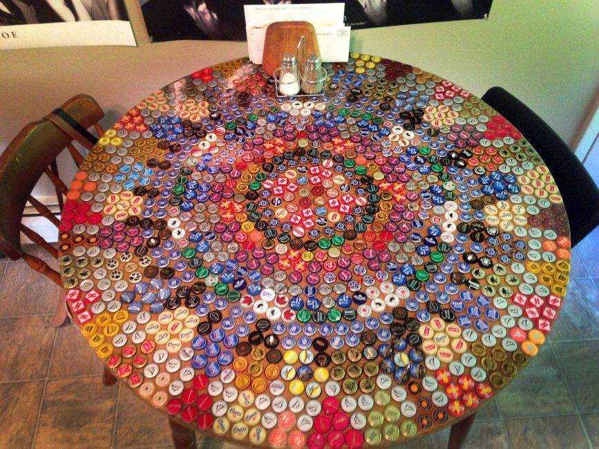 Фантазии человека нет предела. Известно множество поделок из пластиковых бутылок, однако не меньше интересных вещей можно соорудить из крышек от таких бутылок. Готовые изделия можно встретить достаточно редко, так как насобирать достаточное количество материала не так-то просто.