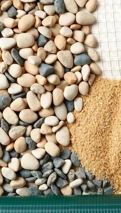 - Геотекстиль: Разновидности по плотности (чем выше плотность, тем лучше фильтрация). Функции: фильтрация (предотвращает заиливание дренажной системы), разделение (предотвращает смешивание слоев щебня и грунта), защита (защищает дренажные трубы от повреждений).