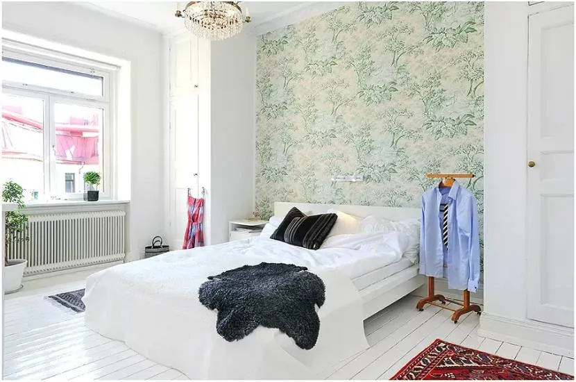 В небольших спальнях всё чаще можно встретить кровати без спинок, так как их собратья с роскошными изголовьями зачастую являются громоздкими и предназначены для больших комнат. Стремясь выделить зону комфорта, многие всё же делают изголовье кровати своими руками. В ход идут деревянные доски, ткань, роспись стен и фоторамки. А мы предлагаем использовать остатки обоев, которые также отлично подходят на роль изголовья. В этом случае практичнее использовать виниловые и моющиеся обои.