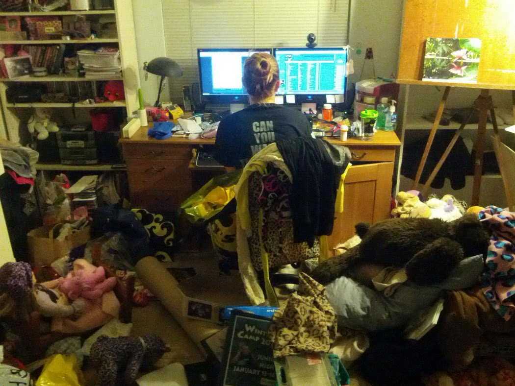 Намного сложнее начинать уборку в неопрятной комнате, где повсюду разбросаны вещи, возле дивана или компьютера стоит грязная посуда.