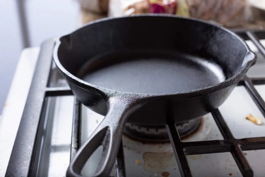 Прогрев сковороды из чугуна на плите