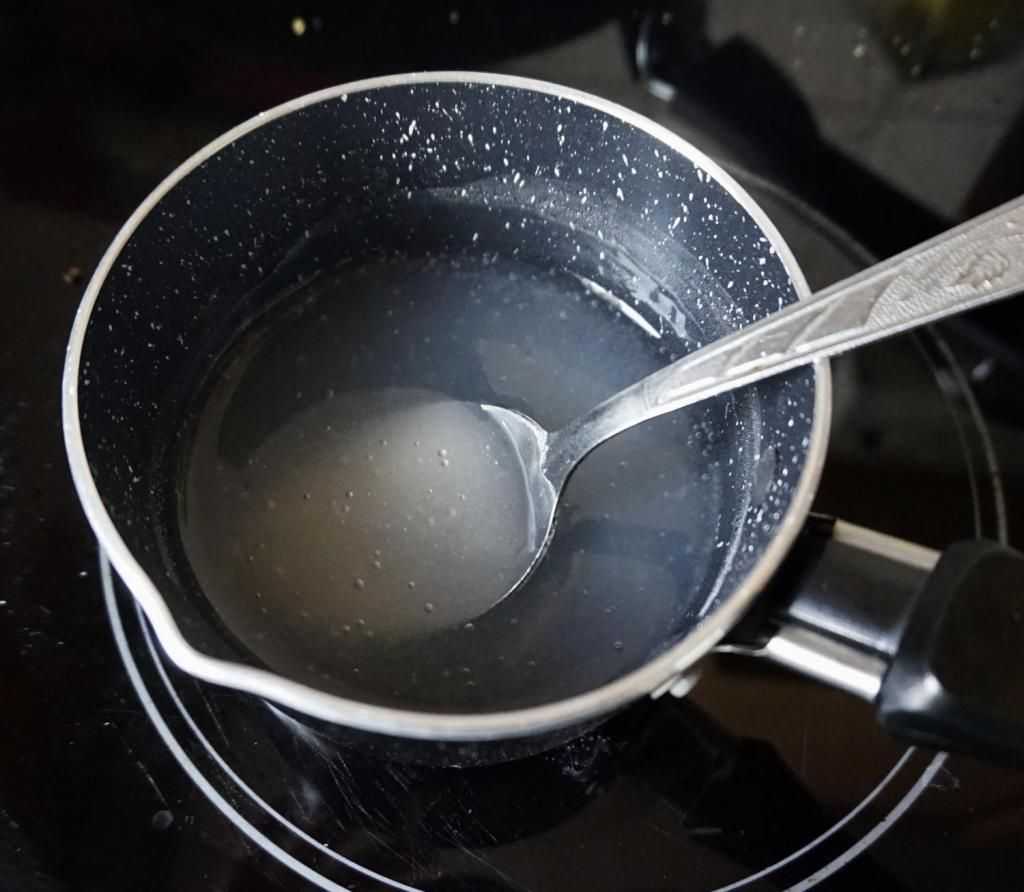 - Нужно развести декстрин кипятком из расчета 1/3 части.