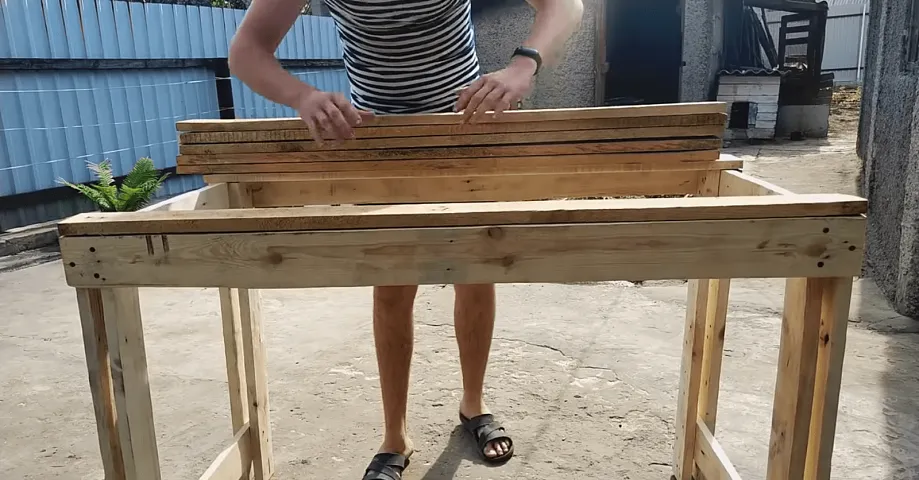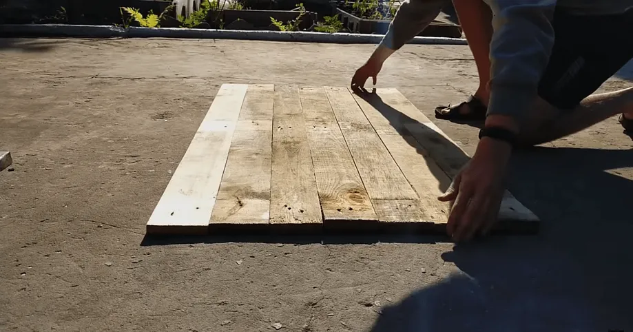 - В зависимости от желаемого размера стола, разберите поддоны на отдельные доски.