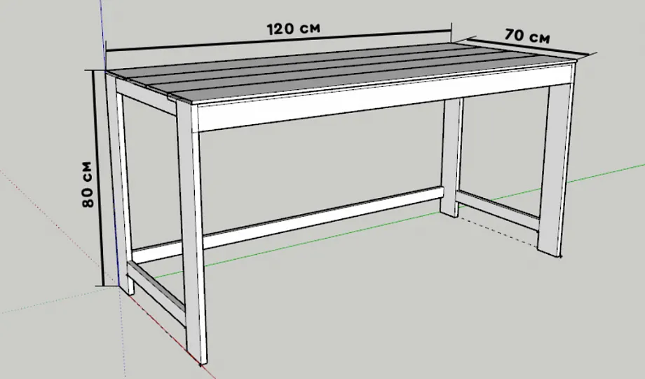 Готовый самодельный стол не должен уступать по качеству заводской продукции, поэтому перед началом работы разрабатывают схему изготовления с простановкой необходимых размеров.