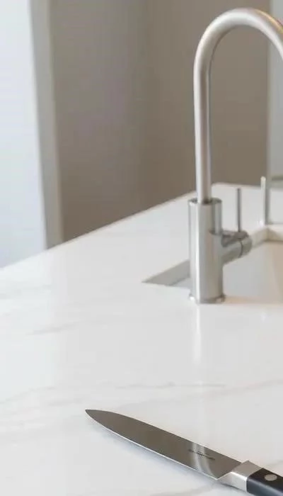 - Износостойкость: Кухонные поверхности подвергаются постоянным механическим воздействиям (сколы, царапины, удары). Натуральный камень, кварцевый агломерат и качественный ЛДСП обладают высокой износостойкостью.