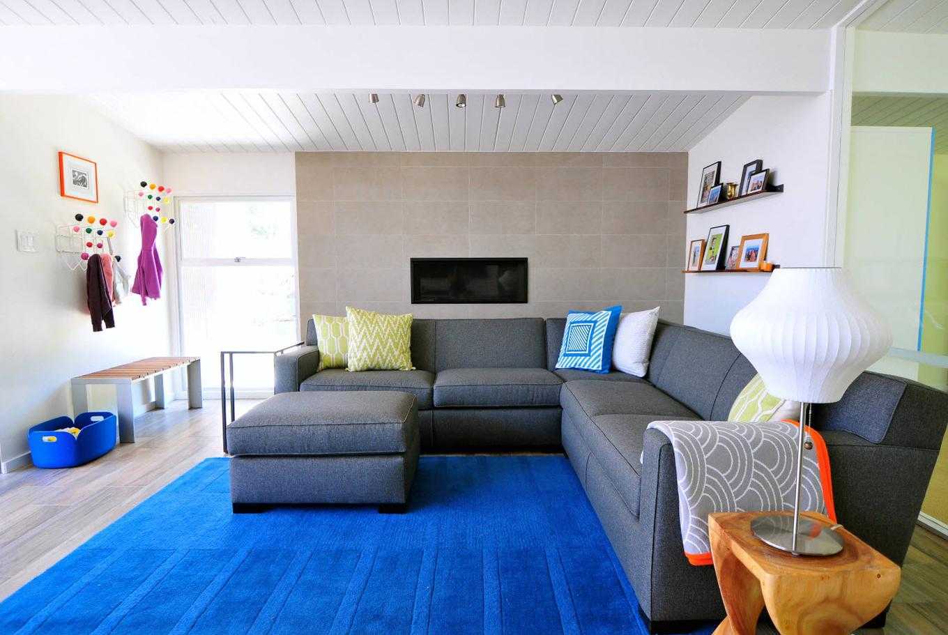 Выразительный предмет мебели (ключевой элемент стиля середины века) или цветовой акцент в виде подушек, ковра или картины или плаката, безусловно, улучшит самочувствие домочадцев и окажет впечатление на гостей