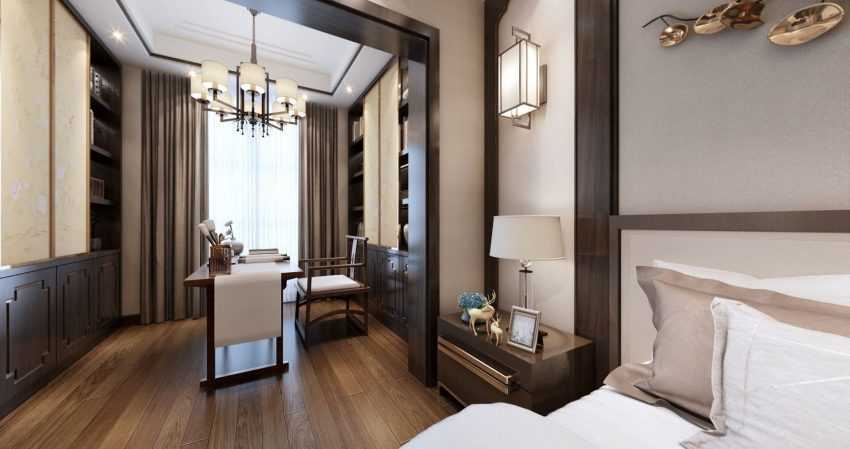 Многие сознательно уменьшают площадь спальни до 10-12 метров квадратных в пользу гардероба. Это перепланировка при которой мы переносим вход вглубь спальни, а освободившееся пространство используем как гардероб. Площадь при этом используется не рационально, зато с точки зрения дизайна такой интерьер спальни смотрится лучше.
