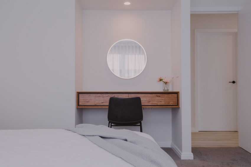 Помимо этого, подойдет и кровать-чердак, которая задействует еще больше вертикального пространства в вашей спальне. Освободившееся под кроватью место можно использовать для офисного стола или даже для туалетного столика.