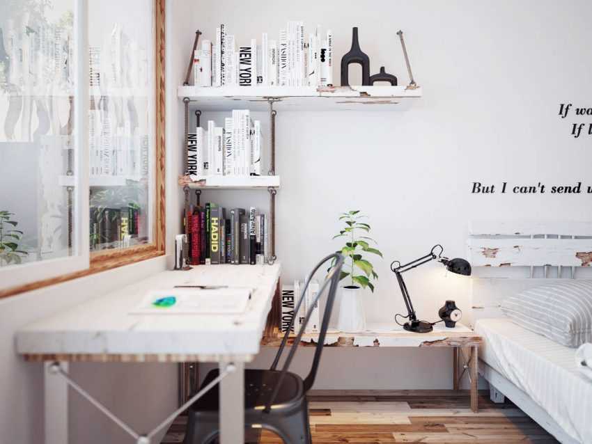 Открытые полки – хороший вариант для хранения максимального количества предметов. Пространство под окном также вариант для размещения дополнительных полок, чтобы освободить место в спальне.