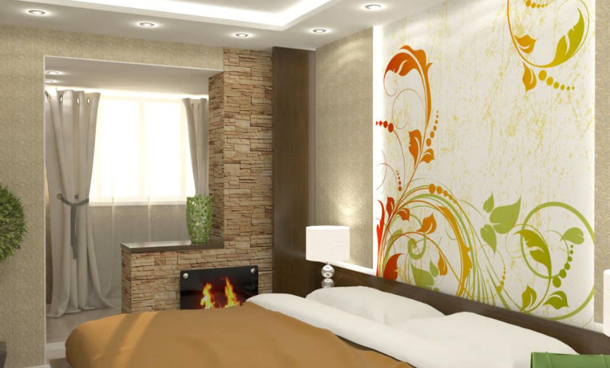 Кровать стандартного типа. Такой предмет следует расположить впритык к стене. Сзади можно выполнить принт, оформленный из обоев контрастного типа. У вас получится специальная зона, предназначенная для сна.