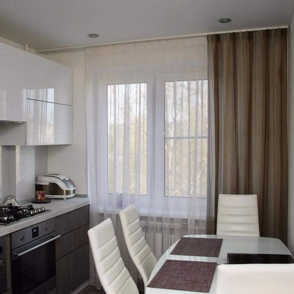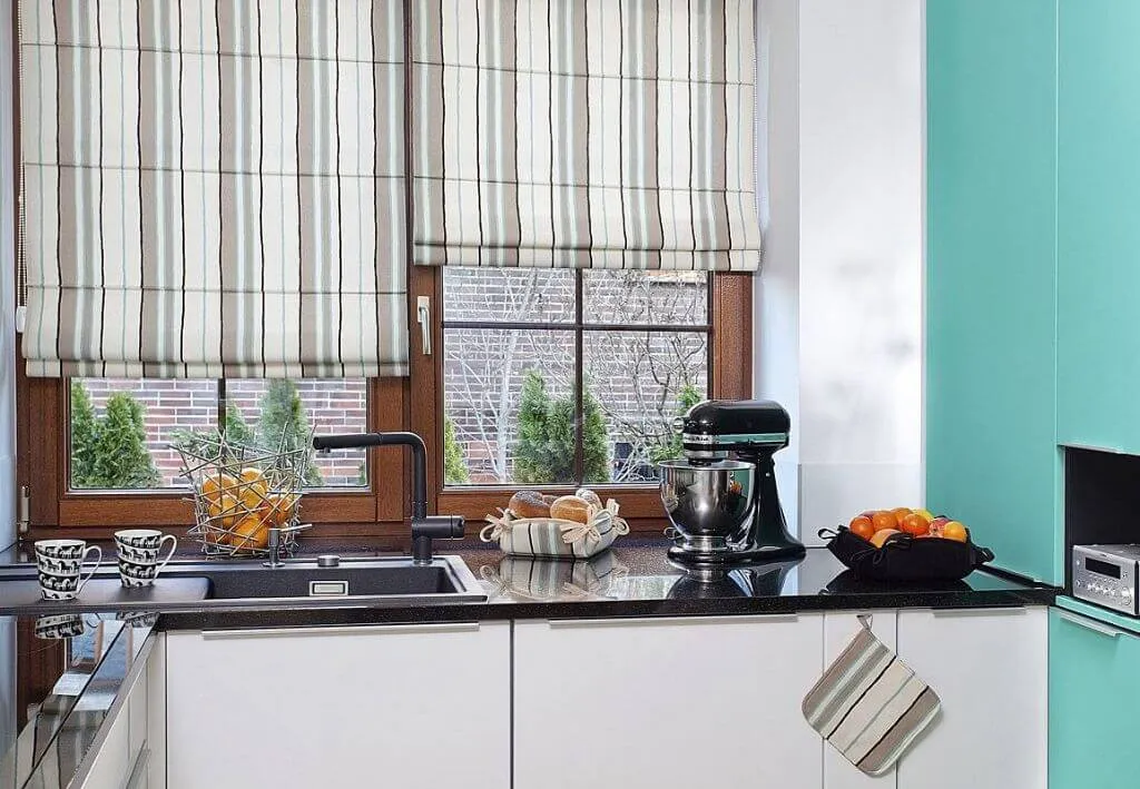 Закрывать окна на кухне с помощью длинных гардин или штор не самая лучшая идея, ведь они будут постоянно пачкаться и могут создавать пожароопасную ситуацию, если рядом стоит газовая плита. А в маленьких кухнях часто подоконники используются в качестве дополнительного места хранения, потому такие занавески будут закрывать доступ к расположенным там предметам.