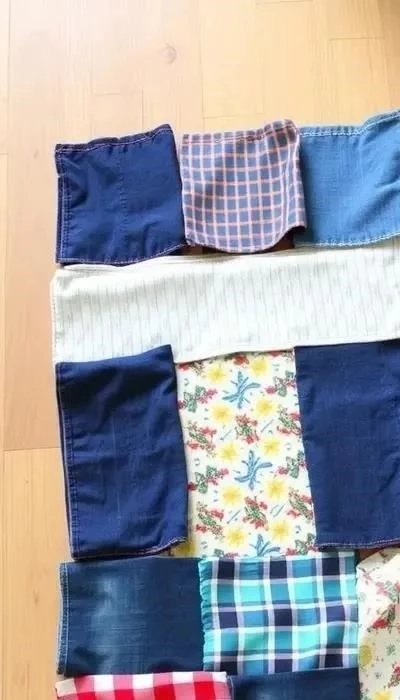 Материалы: Старые джинсы, ножницы, швейная машинка. Инструкция: Нарежьте джинсы на полоски, сшейте их вместе, формируя прямоугольник или квадрат. Сложность: Средняя.
