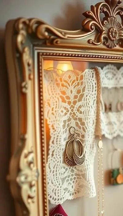 Материалы: рамка для фото, сетка, крючки. Инструменты: плоскогубцы. Инструкция: Натяните сетку на рамку. Прикрепите к сетке крючки для серег и цепочек.