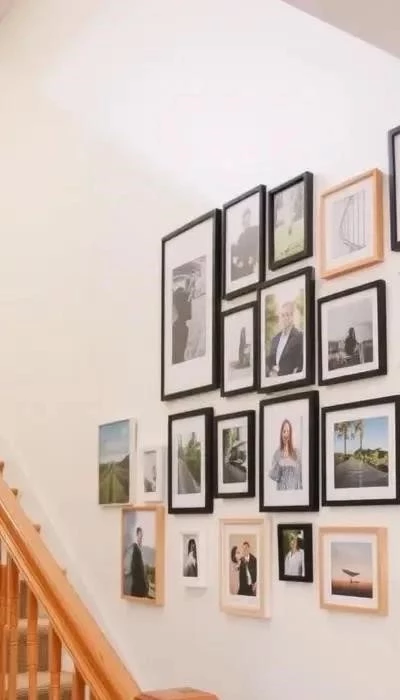 - Фотографии и картины: Создадут галерею на стене вдоль лестницы.