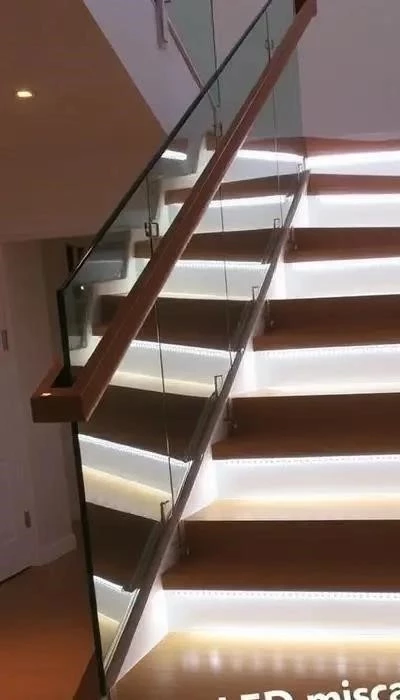 Светодиодные ленты, встроенные в ступени или перила, создадут эффектное освещение и обеспечат безопасность в темное время суток. Совет: Используйте влагозащищенные светильники.