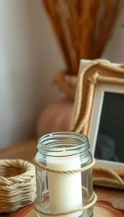 Техника: Обмотка стеклянной банки. Материалы: Шпагат, стеклянная банка, клей. Сложность: Очень легко. Простой и бюджетный способ создать уютную атмосферу в доме.