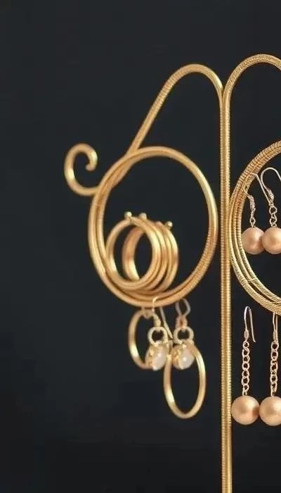Материалы: сетка-рабица, кусачки, крючки, краска. Инструкция: Вырежьте из сетки-рабицы прямоугольник. Согните сетку, чтобы создать форму подставки. Прикрепите крючки для сережек. Покрасьте подставку.