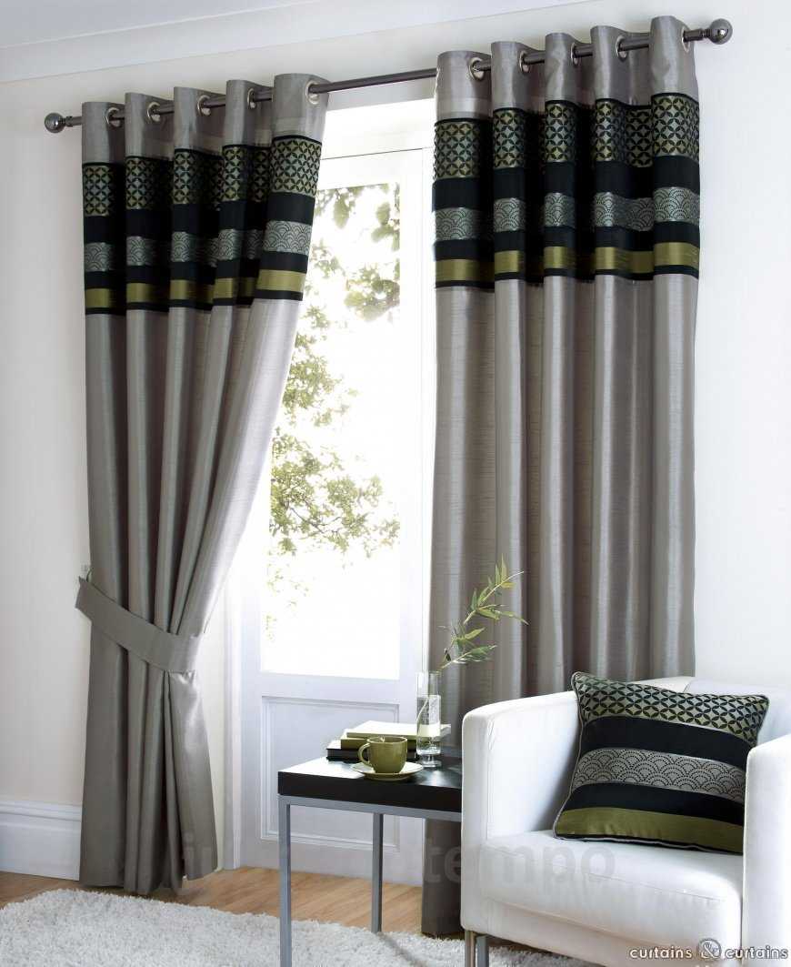 Хорошо смотрятся черные шторы с оригинальным рисунком или орнаментом. Их следует сочетать с контрастными красными, сиреневыми и белыми шторами.