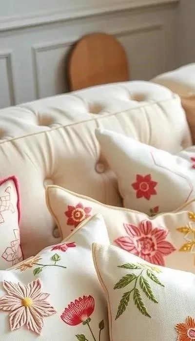 Украсьте подушки вышивкой или аппликацией, чтобы добавить им индивидуальности и уюта. Можно использовать как отдельные мотивы, так и целые композиции.