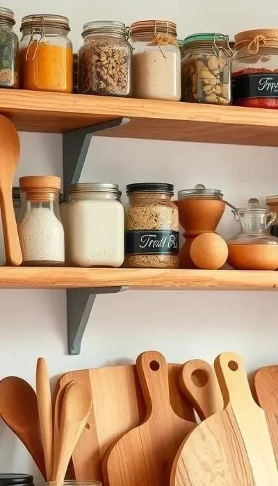 Кухня: разделочные доски, подставки под горячее, полки для специй, деревянные ящики для хранения.