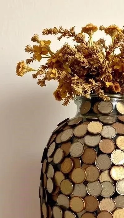 Описание: Украшение вазы монетами или создание вазы из монет и эпоксидной смолы.