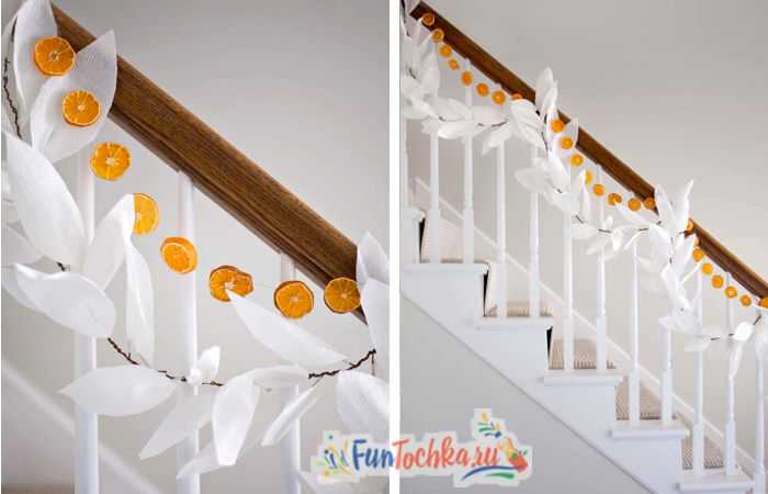Отдельной строкой в сочинении на тему, как украсить дом к Новому году 2023, станут цитрусовые. Апельсины, мандарины, грейпфруты идут в дело полностью. Яркие корзины фруктов целиком в оснастке из узоров гвоздичными зонтиками. Изящные фигурки из подсушенной кожуры. Елочные игрушки и ажурные подвески на окнах и стенах. Ароматные мини-елочки из только что очищенной шкурки. Шикарные венки и трогательные свечи.