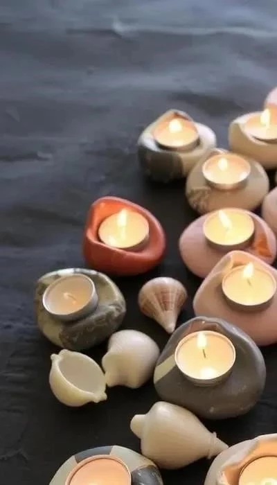Шаг 1: Соберите камни и ракушки. Шаг 2: Приклейте камни и ракушки к стеклянной баночке или подставке для свечи. Шаг 3: Поставьте свечу внутрь.