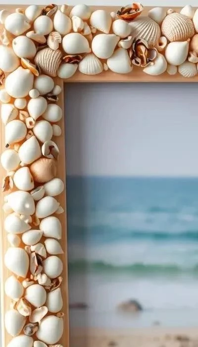 Описание: Простая и эффектная идея. Рамку можно украсить ракушками разных размеров и форм, создавая уникальный морской узор. Сложность: Легко. Стоимость: 200-500 рублей.