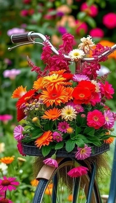 Старый велосипед, покрашенный в яркий цвет, превращается в оригинальную клумбу для цветов. В корзину или на багажник можно высадить любимые растения. Это простой и эффектный способ украсить сад.