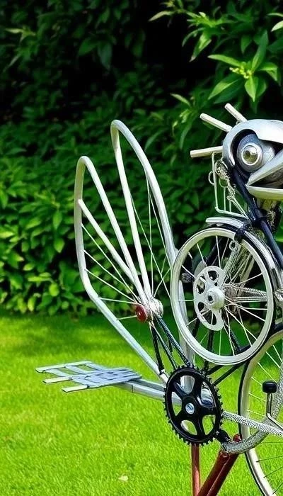 Из велосипедных деталей можно создавать фигурки животных для сада или использовать их для создания небольших ограждений.