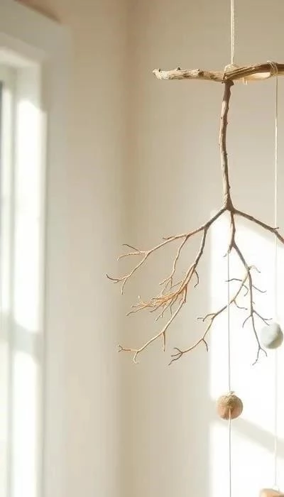 Подвесные украшения из веток – это отличный способ украсить детскую комнату, террасу или балкон. Из веток можно сделать мобили, гирлянды, ловцы снов и другие декоративные элементы. Добавьте к ним бусины, перья, ленты или другие украшения.