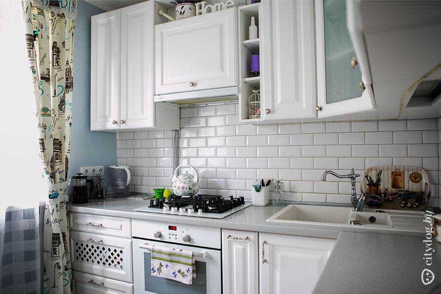 Другой материал для имитации – керамическая плитка. Часто встречается в оформлении фартука. Впишется в прованс, арт-деко. Может быть глянцевой или матовой.