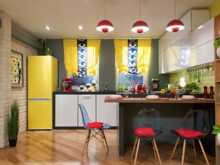 В поп-арт интерьер дополнят яркие постеры, картины и текстиль насыщенных цветов.