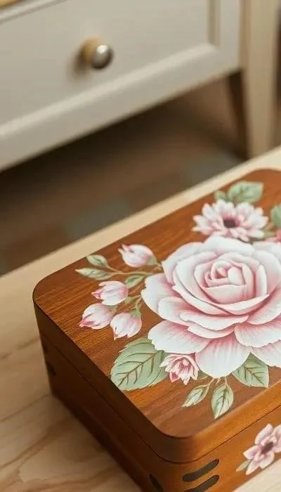 - Шкатулки: Деревянные, металлические, стеклянные шкатулки – декупаж превратит их в настоящие сокровища.