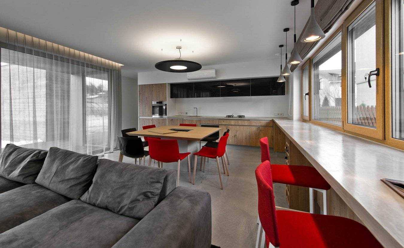 Для данного стиля подойдут сдержанные, лаконичные и при этом очень функциональные деревянные конструкции в комбинации с другими материалами, например, пластика или стекла.