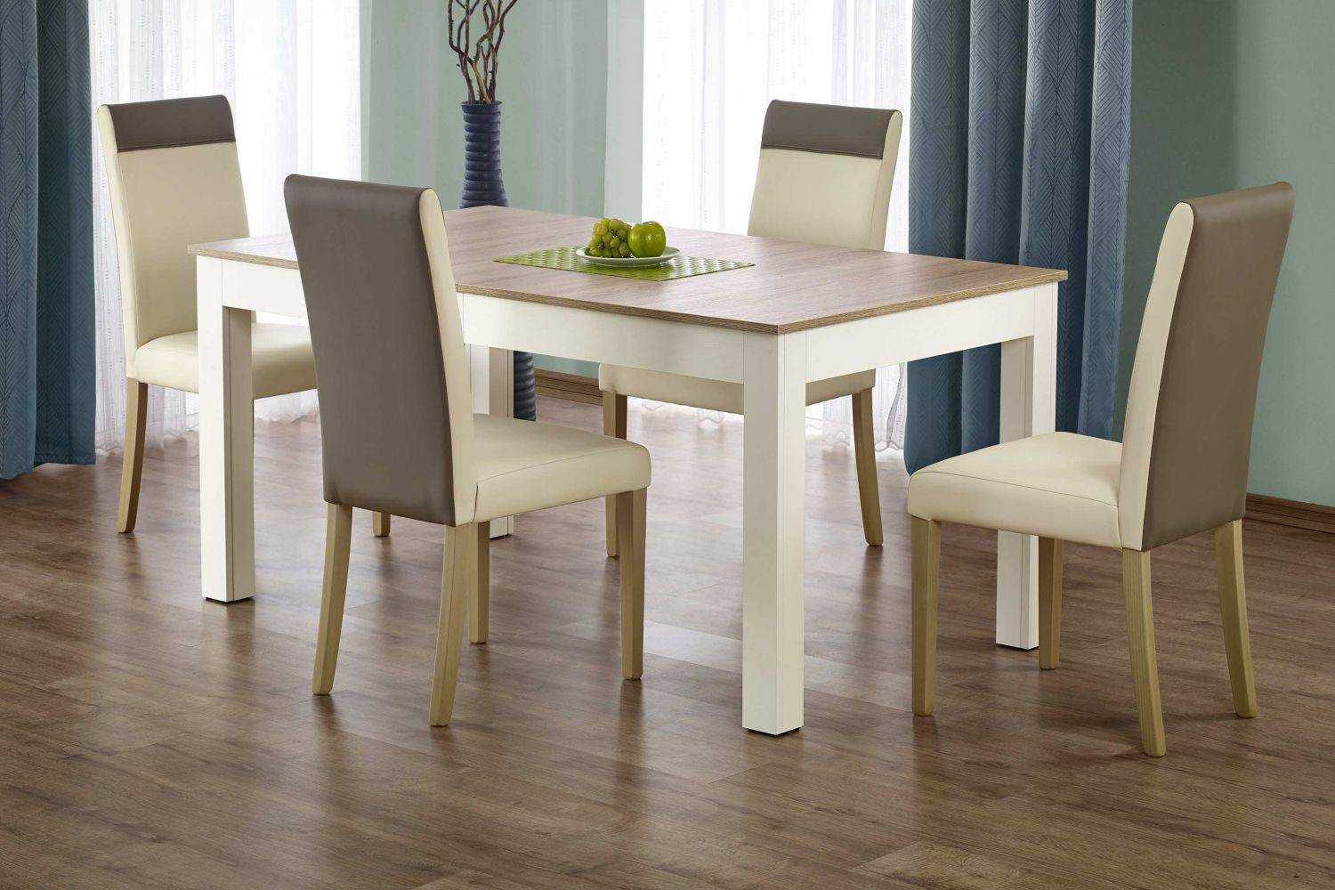 Столы с деревянными ножками дополните такими же стульями. Для классического интерьера закажите накидки на стулья, которые гармонируют с салфетками и диванной обивкой.