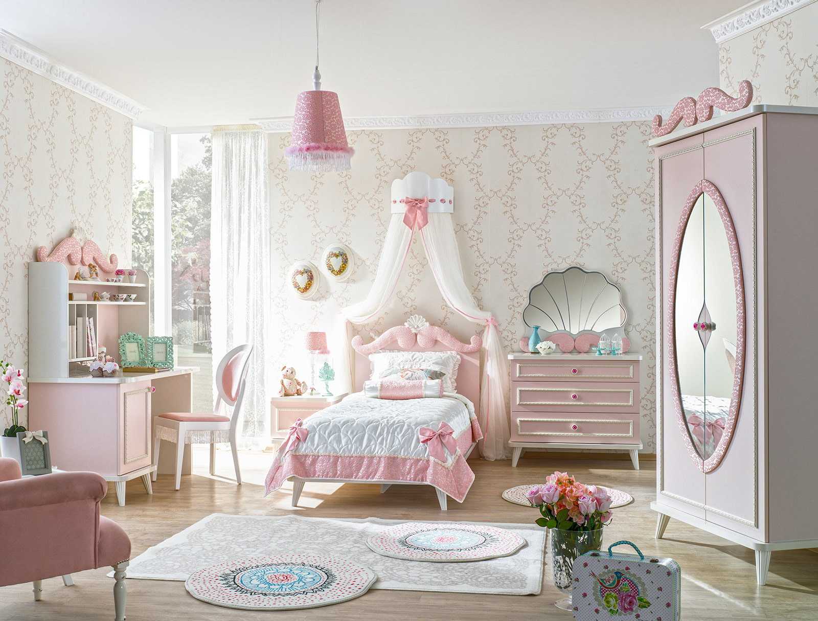— мечта почти каждой девочки. Он нежный, романтичный, ассоциируется с принцессой из детской сказки, и как нельзя лучше подходит для стиля “принцесс”. Каждый цвет имеет свое влияние на психику человека, и розовый — один из самых позитивных в этом смысле. Комфорт, уют, покой — вот что может подарить ребенку .
