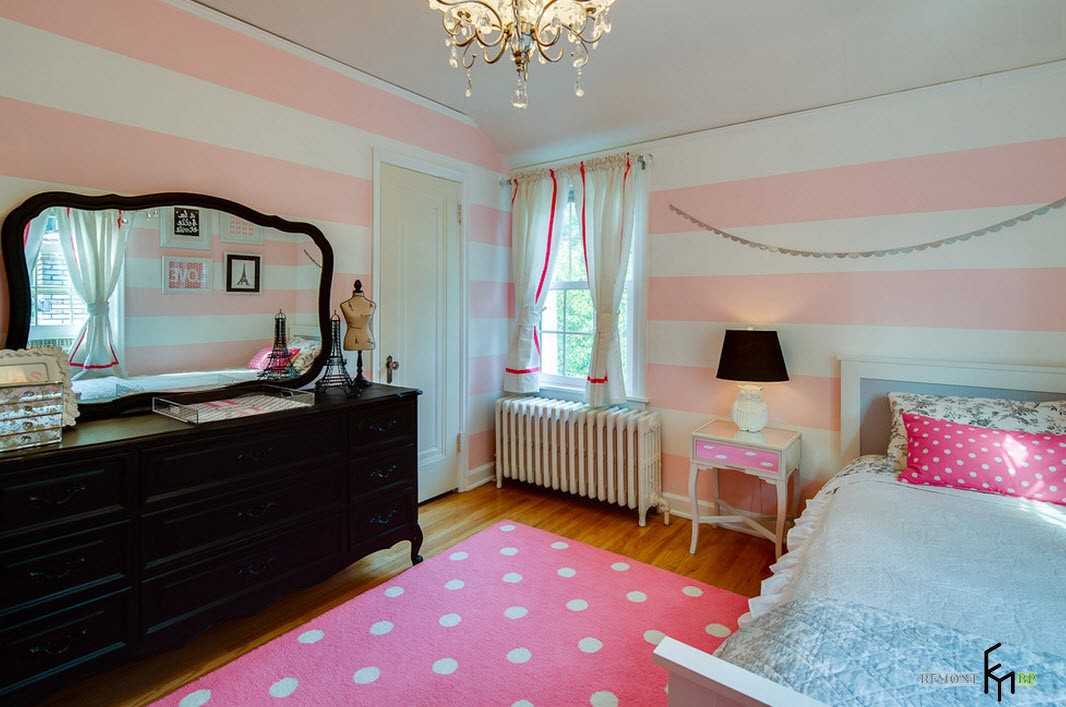 К примеру, стены с розовыми в полоску обоями расширяют помещение, и поднимают уровень потолка. А если комната маленькая, то светло-розовые стены с сочетанием белого визуально увеличат ее.