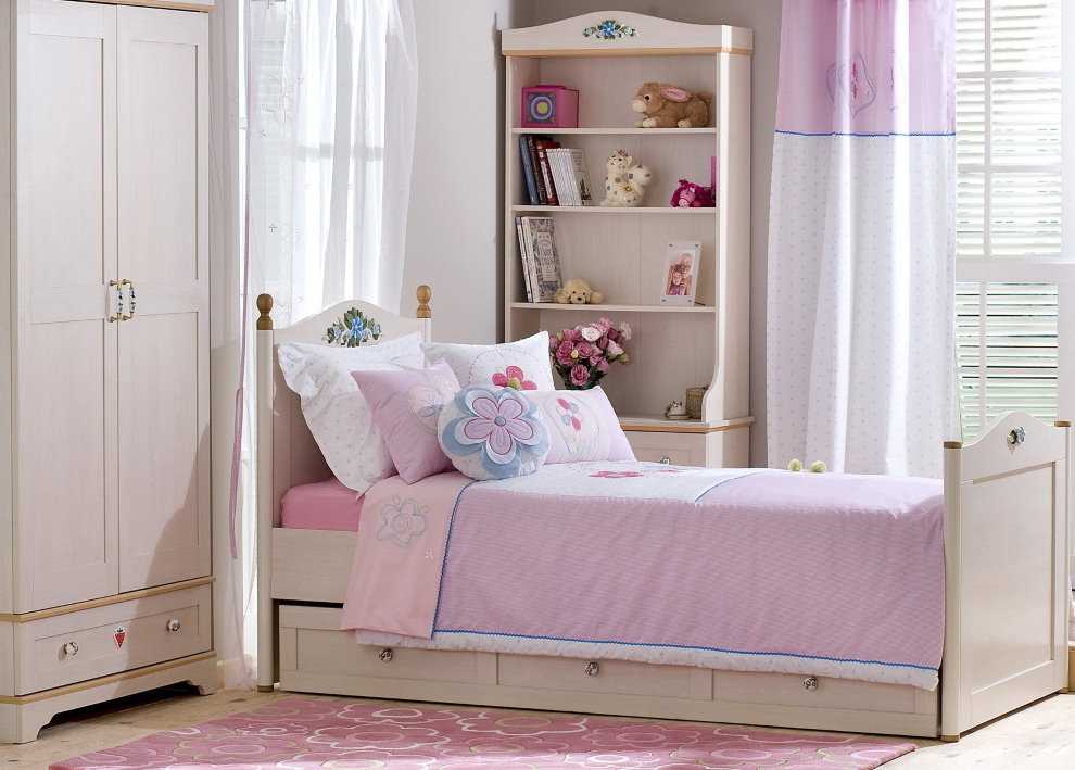Если же столь яркие эксперименты вам не по душе и в задумке у вас нежная и стильная детская, то лучше отдать предпочтение нежно-розовому цвету в сочетании с белым. В такой комнате уместны будут цветочные и растительные мотивы, а также резная деревянная мебель, которая придаст торжественности и некой загадочности. Как правило, подобные интерьеры у многих людей ассоциируются с тончайшим кружевом, которое так к лицу маленьким леди.