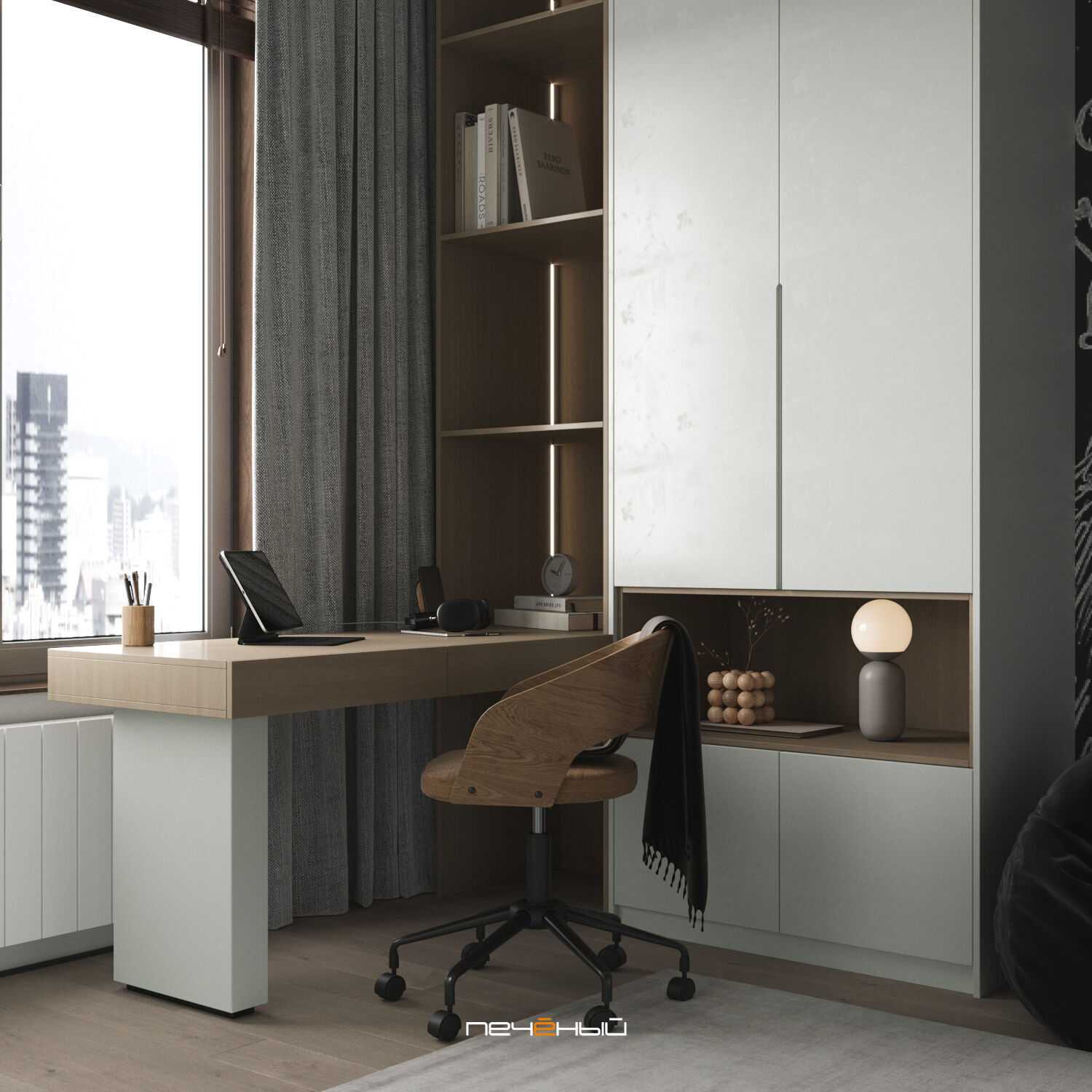 Сложные оттенки в комнате мальчика. Очень стильная детская — дизайн интерьера мальчику, ученику средних классов. Оттенки, которые мы использовали в ремонте, в детских встречаются не так часто. Но смотрятся-то они стильно! Так почему бы и не да, решили мы. ![]()