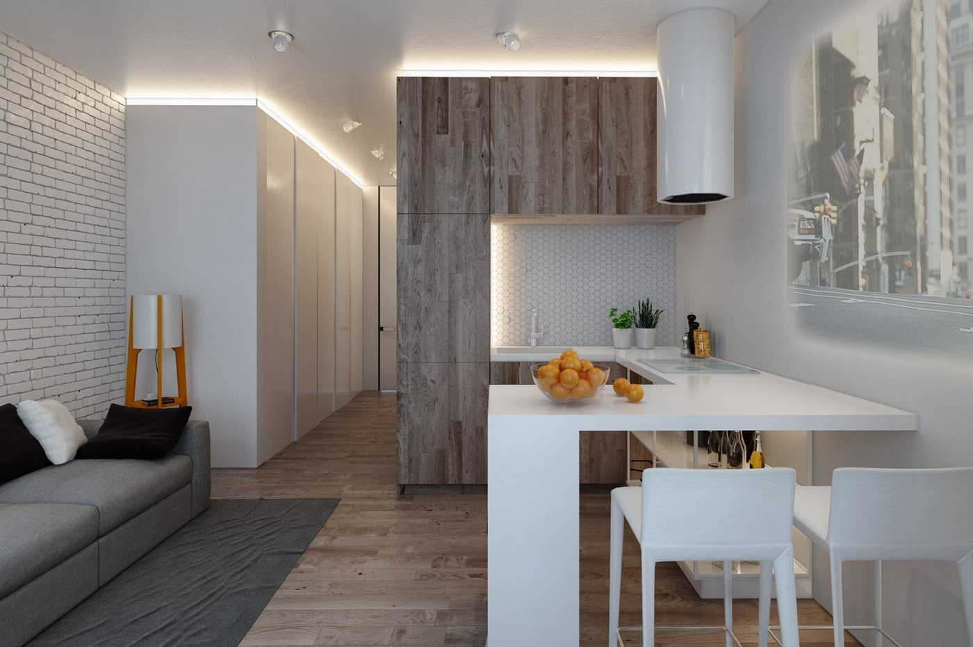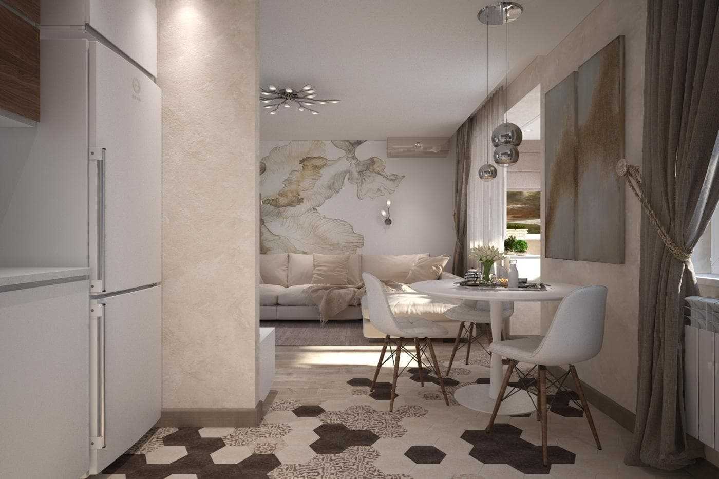 Переход кухни в гостиную в квартире 31 м2