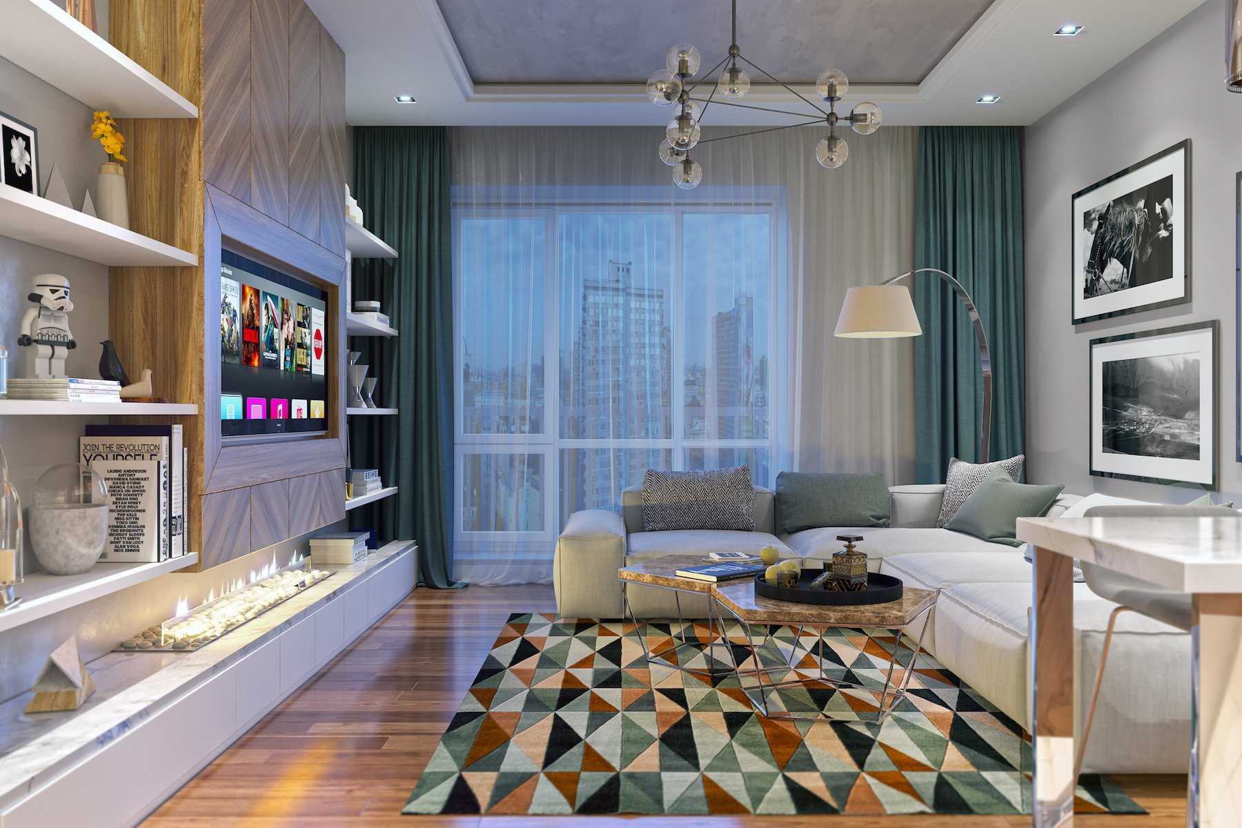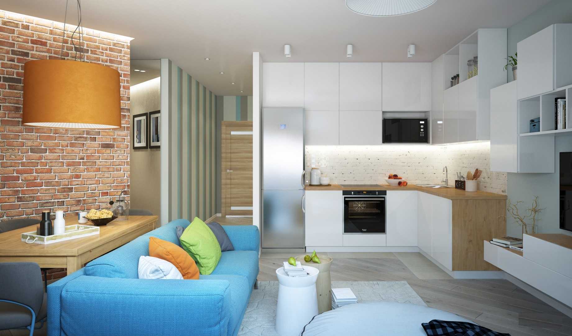 Вместо стульев можно приобрести табуретки, которые легко уместятся под стол. Отличное решение для небольшой светлой кухни — стена, окрашенная черной меловой краской. Это не только оригинальная, но и практичная идея: темный цвет придает глубины, а на поверхности можно оставлять надписи и рисунки. На фото небольшая кухня с грифельной стеной и встроенным холодильником. Гостиная Гостиная в квартире 38 кв. Здесь владелец проводит большую часть своего времени и хранит всё необходимое, а зачастую и спит.