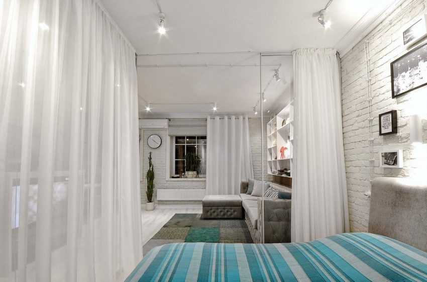 За основу несложно взять фото зонирования гостиной и спальни, изменив их по своему вкусу.