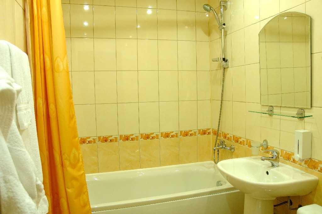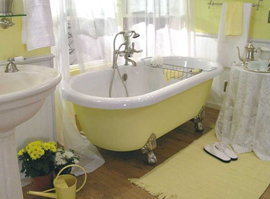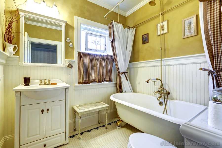 Например, хрустальная люстра на цепях вполне допустима в классическом интерьере желтой ванной комнаты, но в помещениях, оформленных в стиле стиле хай-тек или этническом, она будет выглядеть, как минимум, чужеродно.