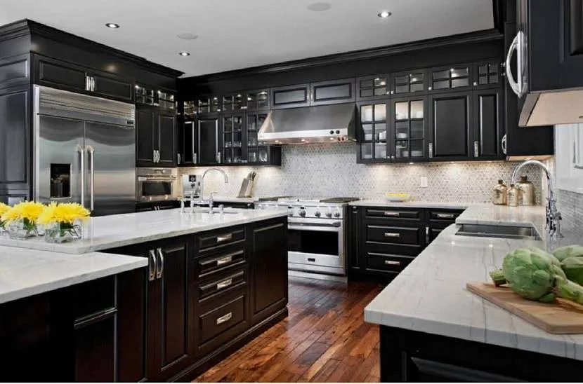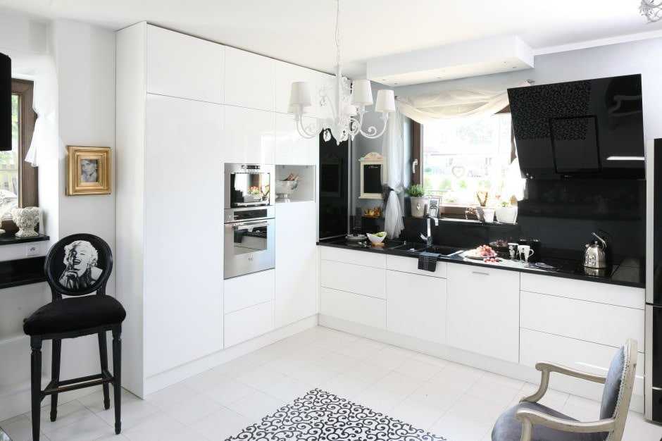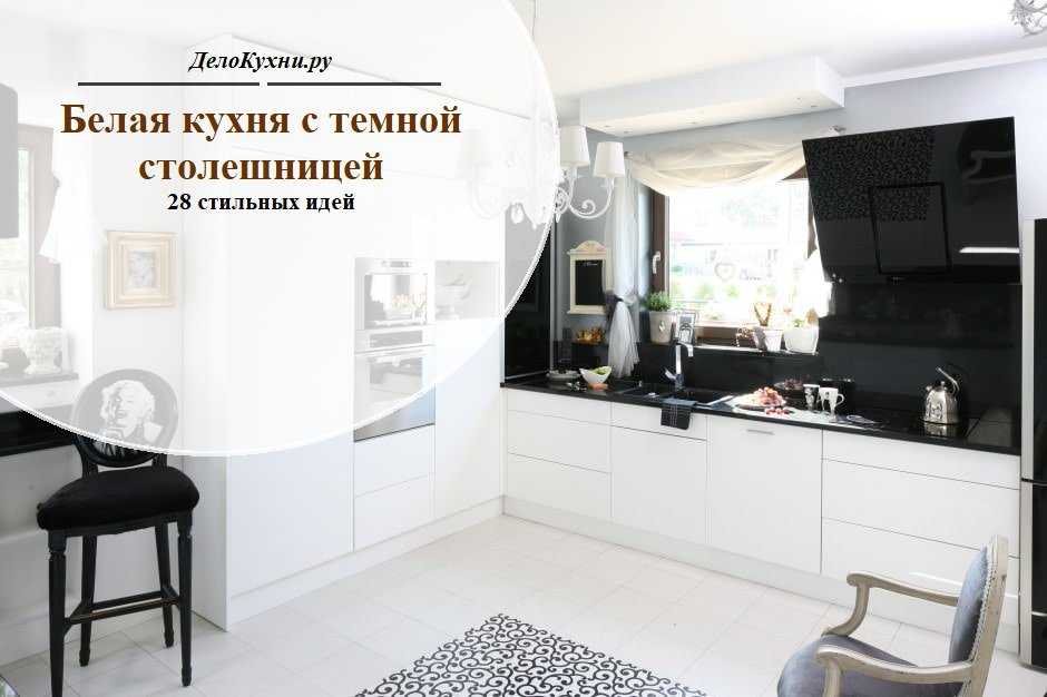Дизайн белой кухни с черной столешницей: 5 советов и 28 идей
