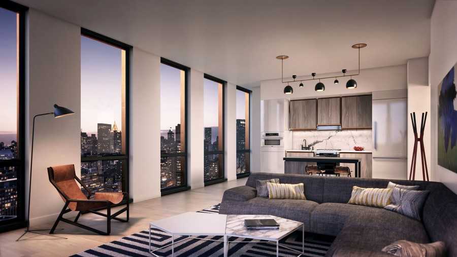 Раз начали с кухни, оформляем ее границы. Можете это сделать, установив барную стойку на границе кухонной зоны и остальных. Эта территория должна составлять ¼ часть всей квартиры, если делить его на равные доли. Вы можете выделить для кухни большую часть чтобы обустроить обеденную зону.
